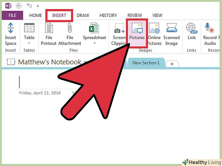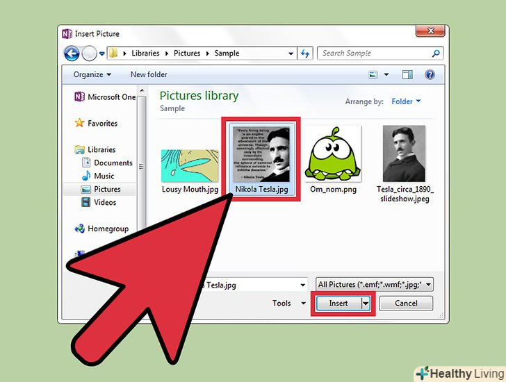 Перейдіть до зображення і виберіть те, яке хочете відсканувати.після цього натисніть " Відкрити» ("вставити" на Mac). Файл зображення з'явиться в OneNote там, де знаходиться курсор.[4]- Щоб витягти текст з роздруківки документа, замість опції «малюнок» виберіть «роздруківка».[5]
