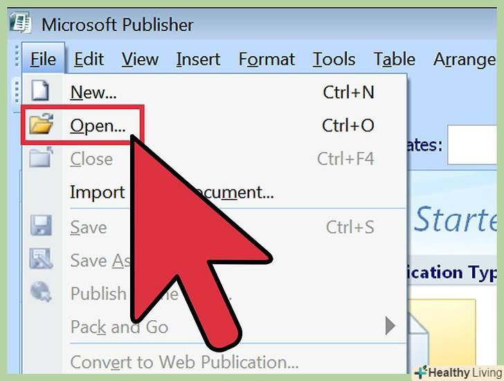 Файли Microsoft Publisher (.pub) можна відкрити тільки за допомогою програми Publisher. Через брак Publisher можна конвертувати файли в формат PDF. Це дозволить відкрити файл великою кількістю способів, в тому числі і за допомогою веб-браузера. Якщо у вас є Publisher, то можна просто зберегти файл у форматі PDF.