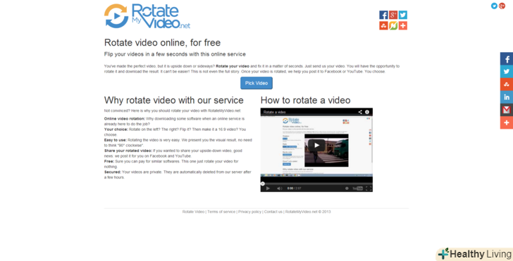 ВідкрийтеRotateMyVideo.net і клікніть на кнопку "Pick Video" в центрі сторінки.