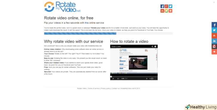 Виберіть відео на вашому комп'ютері або в Інтернеті.як тільки діалогове вікно вибору файлу буде закрито, відео почне завантажуватися на RotateMyVideo. На це піде від декількох секунд до пари хвилин, в залежності від вашого підключення і розміру відеофайлу.
