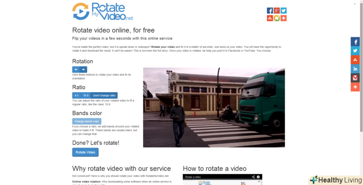 Використовуйте кнопки повороту в секції Rotation (кнопки з лівою і правою стрілкою) до тих пір, поки відео не буде налагоджено.ви зможете побачити результат на відео знімку праворуч.