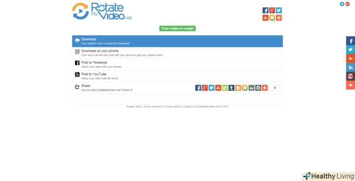 Клікніть на кнопку "Rotate Video". RotateMyVideo почне роботу над відео. На операцію підуть кілька секунд.