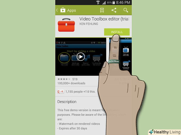 Пошукайте додаток для повороту / редагування відеороликів.існує кілька безкоштовних і платних додатків, доступних на iOS і Android телефони та планшети. Перевірте відгуки про програму до того, як почнете ним користуватися, особливо це стосується платних додатків. Популярні програми: [4]- Video Rotate Free – iOS