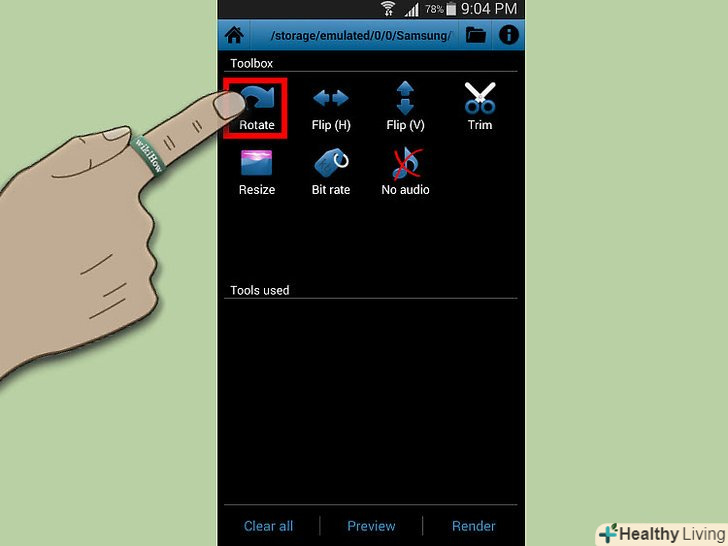 Поверніть ваше відео.як тільки додасте файл, ви відразу ж зможете його редагувати. Доступні опції будуть залежати від використовуваного додатка, але практично всі вони включають опцію повороту на 90°.