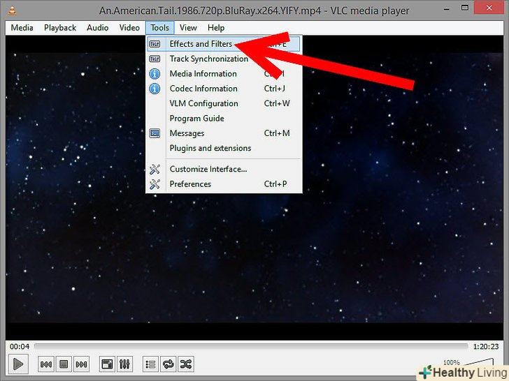 Відкрийте віконце "Adjustments and Effects".щоб це зробити, клікніть на три вертикальних повзунка або на меню Tools - "Effects and Filters".