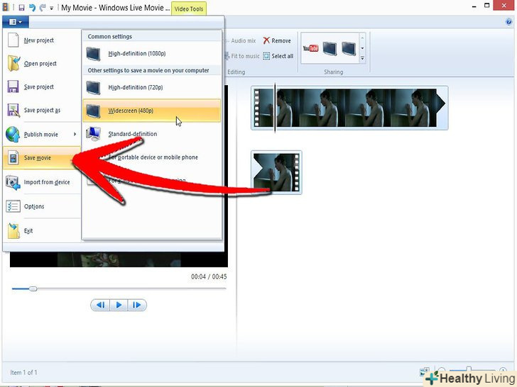 Збережіть зміни.збережіть зроблені зміни, клікаючи на кнопку " Save movie "у вкладці Home і вибираючи потрібний формат, або клікаючи на File, вибираючи" Save movie " і вказуючи потрібний формат. Виберіть місце для збереження файлу. [1]