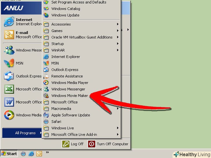 Відкрийте Windows Movie Maker 2.6.відкрийте меню Пуск, натисніть на програми. Прокрутіть вниз, поки не знайдете " Windows Movie Maker."- Можливо вам доведеться завантажити Movie Maker, якщо він не був встановлений в системі заздалегідь. Ви зможете це зробити на офіційному веб-сайті Microsoft.