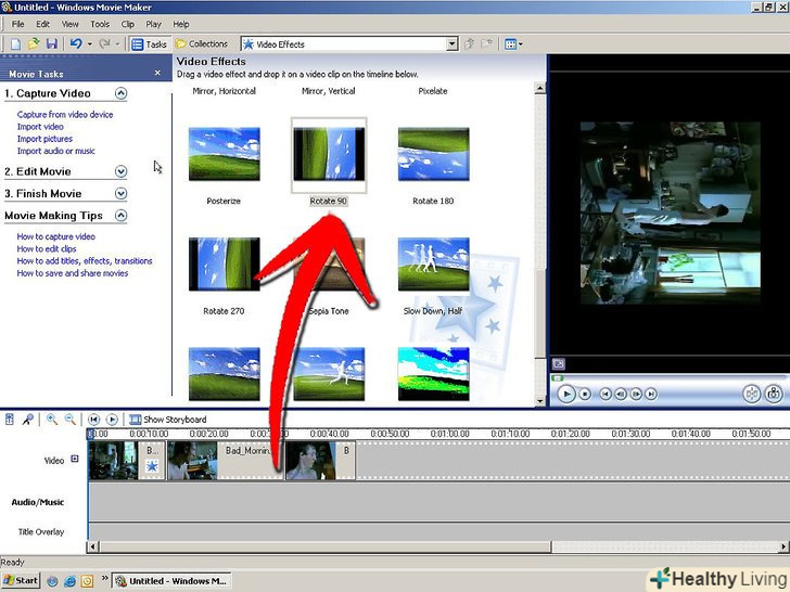 Поверніть відео в програмі Movie Maker.натисніть по ньому правою кнопкою миші, потім виберіть опцію"ефекти". "Додати ефект". Знайдіть список ефектів і виберіть одну з опцій: "повернути на 180", "повернути на 270" або "повернути на 90". Натисніть "Додати". Ефект доданий на відео. Натисніть на "ОК".