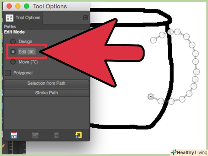 Клацніть двічі на paths tool і встановіть в режим “edit" (або утримуйте CTRL, під час виконання наступного кроку).