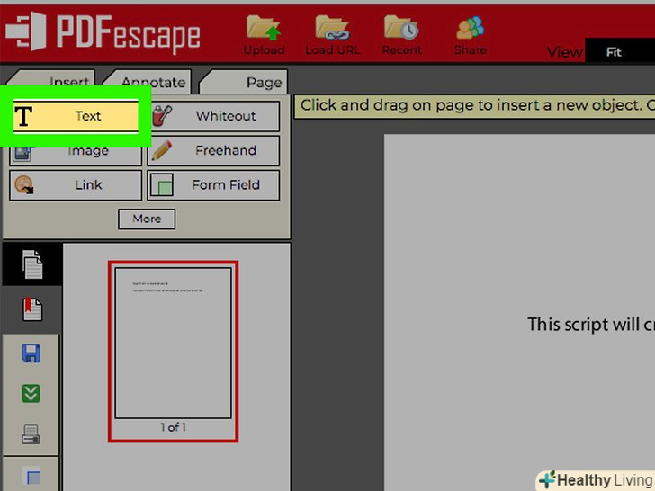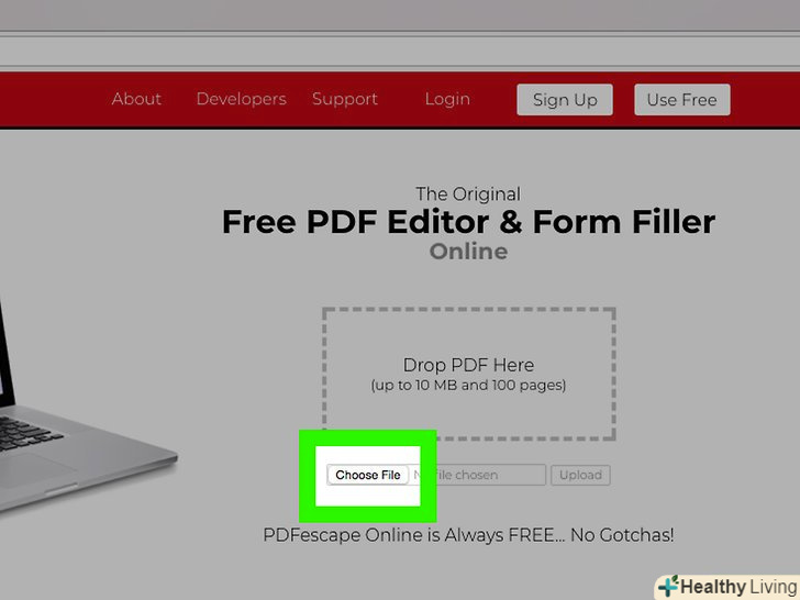 НатиснітьUpload PDF to PDFescape (завантажити PDF в PDFescape). це посилання знаходиться у верхній частині сторінки. Відкриється вікно.