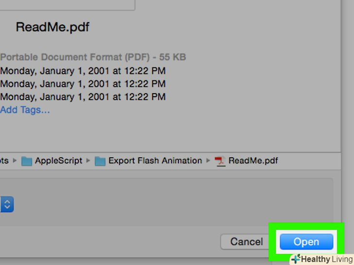 Виберіть PDF-документ.клацніть по імені потрібного PDF-файлу.- Можливо, спочатку вам доведеться клацнути по папці з PDF-файлом в лівій частині вікна.