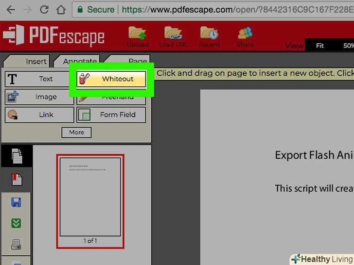 Клацніть по вкладціWhiteout (замазати).ви знайдете її у верхній лівій частині сторінки.