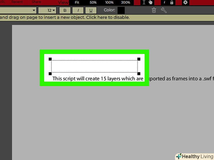 Створіть нове текстове поле.клацніть у верхньому лівому куті порожньої білої рамки.
