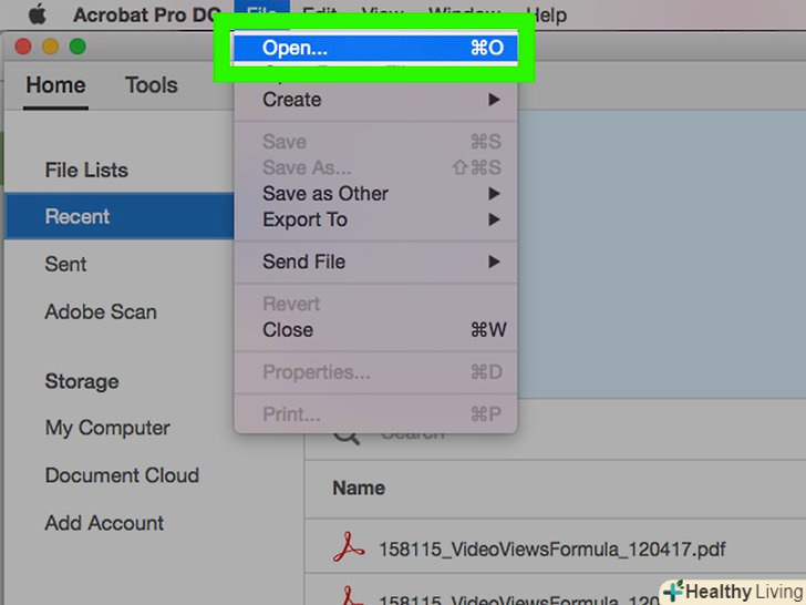 Відкрийте PDF-файл в Adobe Acrobat. якщо Adobe Acrobat є програмою для перегляду PDF-документів за замовчуванням, просто двічі клацніть по потрібному PDF-файлу.- Якщо Adobe Acrobat не є програмою для перегляду PDF-документів за замовчуванням, відкрийте Adobe Acrobat, натисніть "Файл" gt; «Відкрити», виберіть PDF-файл, а потім натисніть «Відкрити».