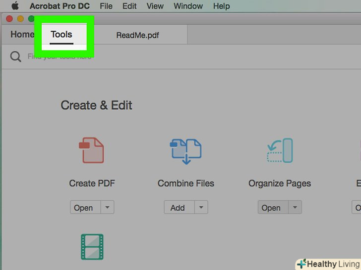 Клацніть поІнструменти. це вкладка у верхній лівій частині вікна Adobe Acrobat.