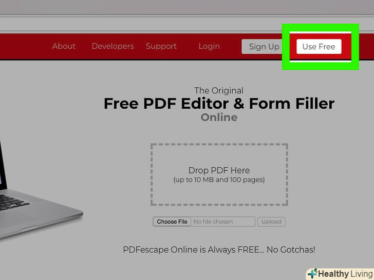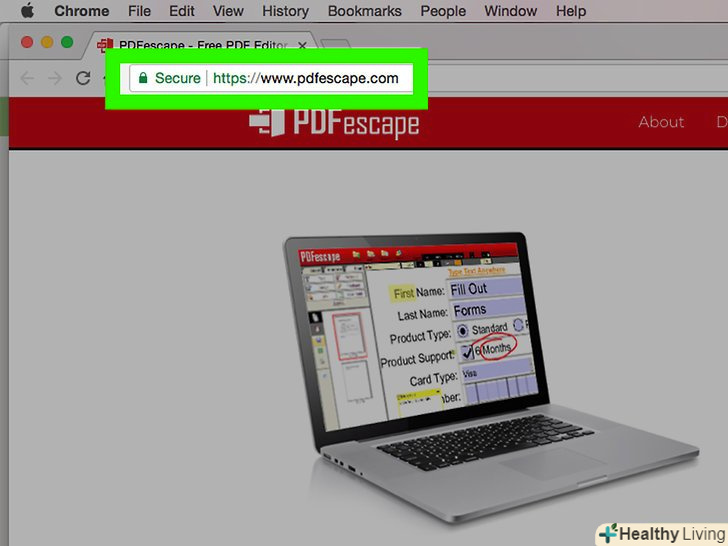 Відкрийте сайт сервісу PDFescape. перейдіть на сторінку https://www.pdfescape.com/.
