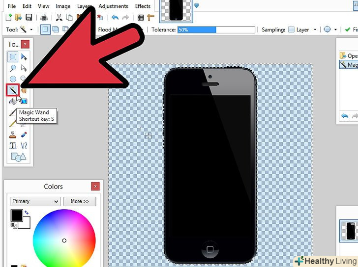 - Переконайтеся, що маєте прозорий шар для того, щоб тіні спрацювали. Можливо вам доведеться використовувати інструмент Magic Wand, щоб видалити невикористовувані частини зображень.