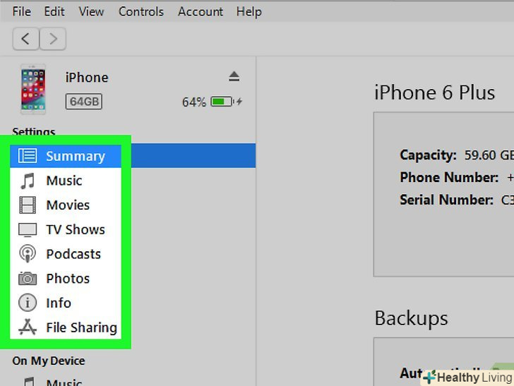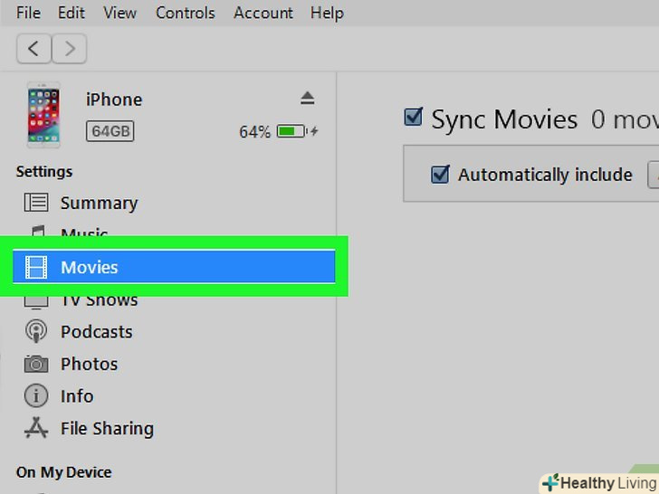 Виберіть тип вмісту, який хочете синхронізувати. у лівому стовпці "Налаштування «відобразиться ряд категорій (наприклад,» Музика«,»Фільми"). Натисніть на одну з категорій, щоб переглянути параметри її синхронізації.