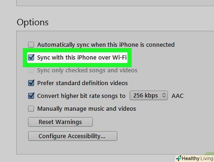 - Встановіть прапорець біля " синхронізувати lt;ваш пристрій gt; через Wi-Fi».
