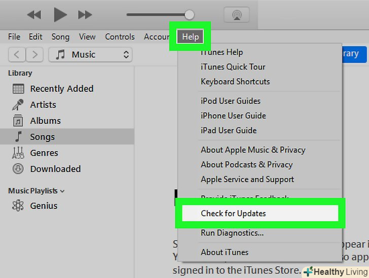 - Якщо Ви користуєтеся Windows і завантажили iTunes з Apple, відкрийте меню "Довідка «в iTunes, виберіть» Перевірити оновлення" і дотримуйтесь інструкцій на екрані.