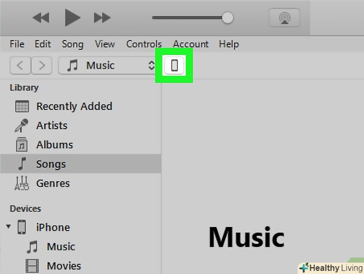 Натисніть кнопку "пристрій".вона знаходиться у верхньому лівому кутку iTunes.- Якщо з'явилося повідомлення про те, що пристрій вже синхронізовано з іншою бібліотекою iTunes, будьте обережні. Якщо натиснути "стерти і синхронізувати", контент на пристрої (наприклад, музика або фотографії) буде видалений і замінений на контент з комп'ютера.