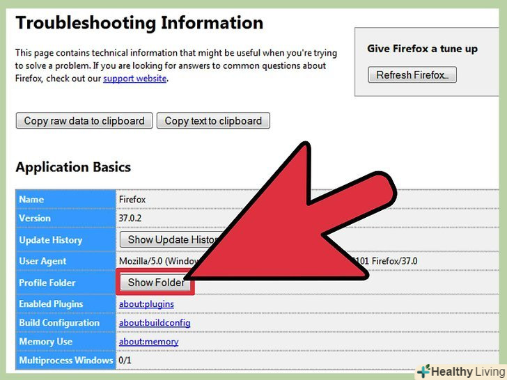 Відкрийте дані вашого профілю, що містяться в певній папці.для цього клацніть по кнопці у верхній частині сторінки. Залежно від вашої операційної системи і версії браузера ця кнопка буде назватися наступним чином:[4]- У Windows натисніть "Відкрити папку"