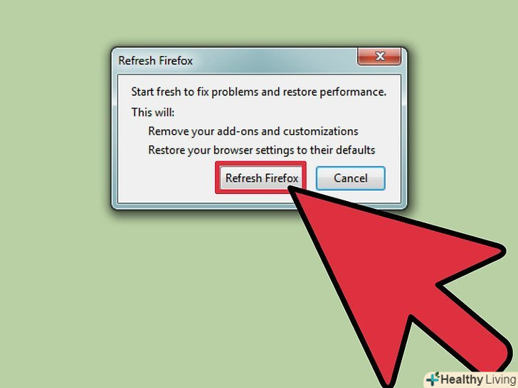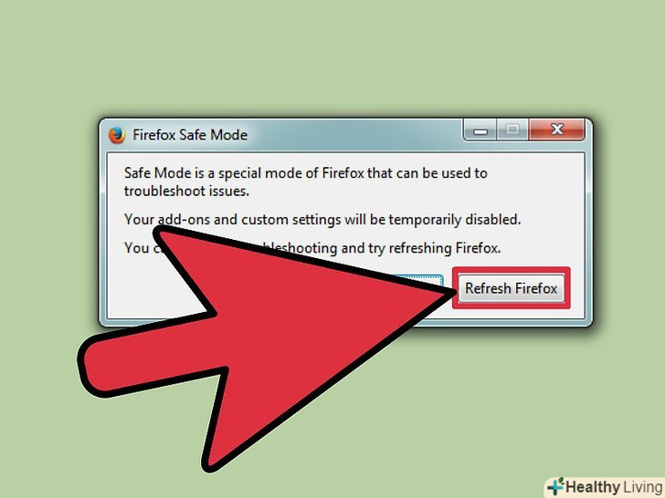 Натисніть "Очистити Firefox".перед тим, як система відкриє вікно браузера, на екрані відобразиться вікно з двома опціями. У цьому вікні натисніть Очистити Firefox, щоб скинути налаштування і доповнення браузера.- Або виберіть опцію "запустити в безпечному режимі", щоб перевірити, працює браузер чи ні. Якщо в безпечному режимі браузер функціонує нормально, вимкніть деякі доповнення і перезапустіть Firefox. Якщо це не спрацювало, ще раз запустіть браузер в безпечному режимі і натисніть «Очистити Firefox».