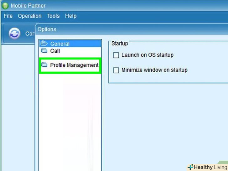 У лівій рамці виберіть опцію "Profile Management" (Управління профілем).цим ви відкриєте редактор профілю, де зможете дозволити програмі підключатися до обраної вами мобільної мережі.