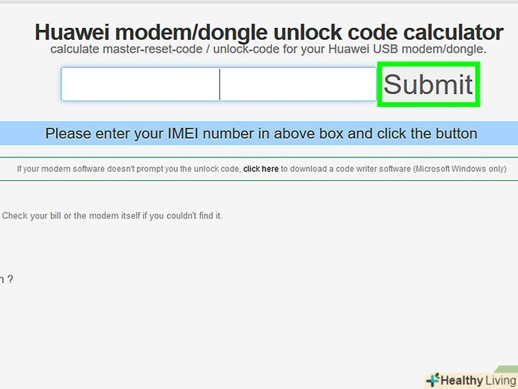 Згенеруйте код розблокування. знайдіть генератор кодів розблокування, який підійде під вашу модель модему. Ви легко знайдете такий генератор, якщо введете в пошуковий запит фразу «[модель модему] код розблокування». Введіть в генератор кодів свій IMEI номер і запишіть згенерований код.- Не вводьте багаторазово номер IMEI в генератор кодів, так як це може навічно привести до блокування модему.