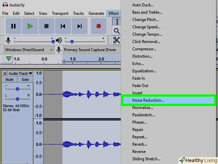 КлацнітьПридушення шуму.... Пункт знаходиться в середній частині меню, що випадає Ефекти.