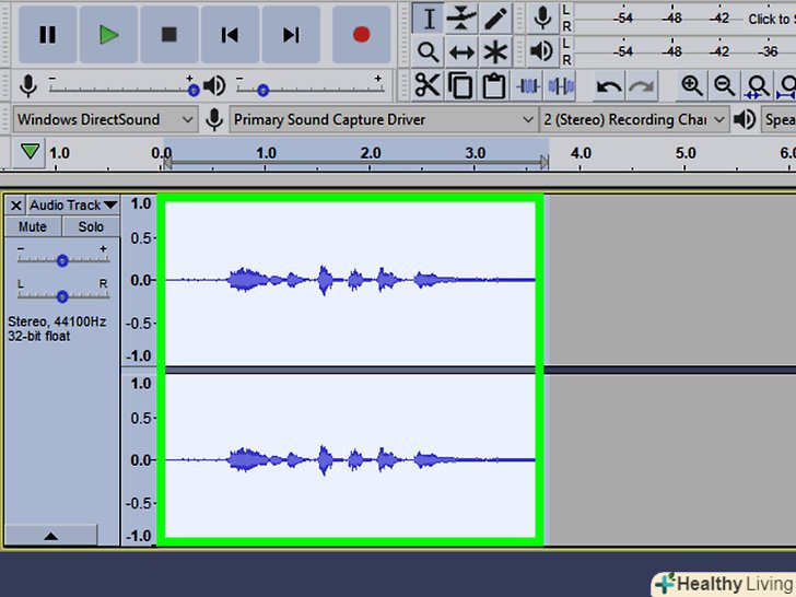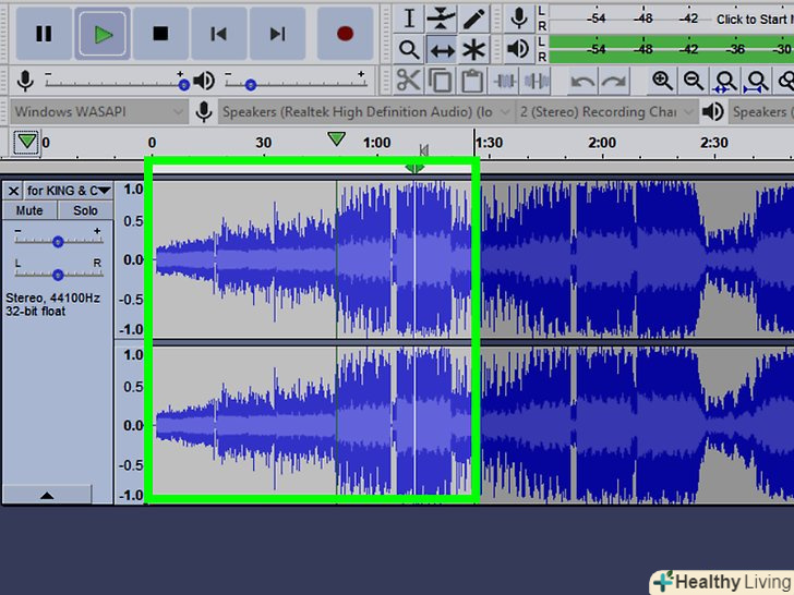 Знайдіть клацання.на графіку вони зазвичай виглядають як завищені піки звукової хвилі у вікні Audacity. Якщо одна ділянка треку значно голосніше РЕШТИ доріжки, тоді це напевно клацання.