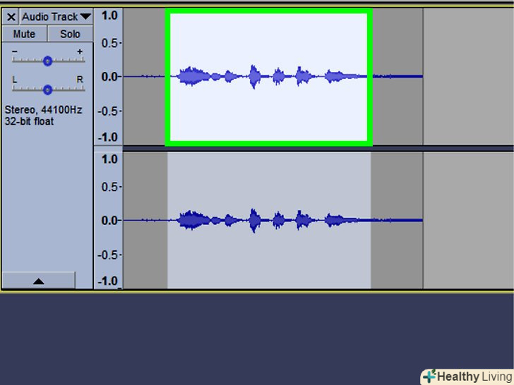 Виберіть частину треку, в якій потрібно прибрати шум. Також можна клацнути по треку і натиснути Ctrl+A (Windows) або ⌘ Command+A (Mac), щоб вибрати весь трек.