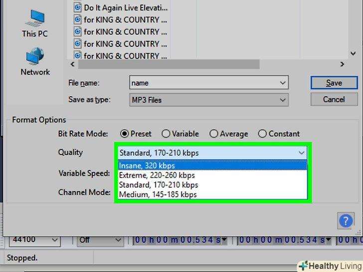 Не конвертуйте аудіо до збереження в Audacity. якщо конвертувати файл WAV в MP3, після чого імпортувати файл в Audacity, то ви втратите в якості. Слід дочекатися фінального процесу збереження , щоб перетворити файл.