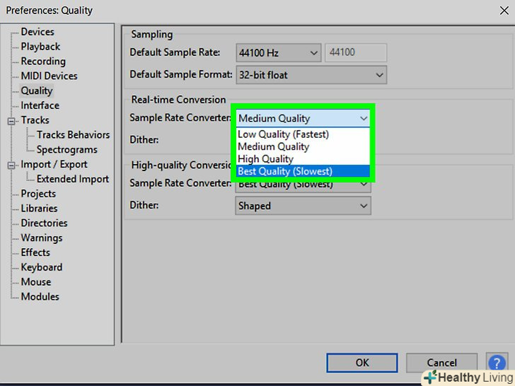 - Клацніть список "конвертер частоти дискретизації" і виберіть найкращу якість (повільно);