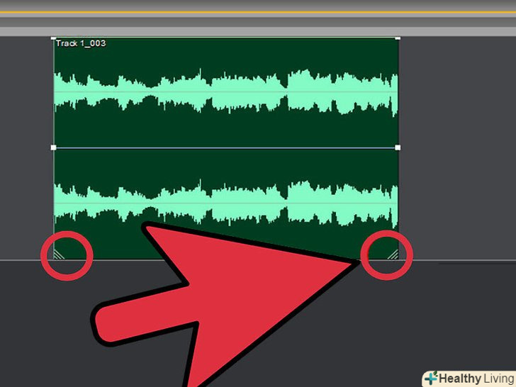 Виділіть початок і кінець відрізка, який ви хочете відредагувати.у бажаному місці клацніть мишкою і виділіть потрібний відрізок (утримуючи ліву клавішу мишки). Відрізок буде виділений іншим кольором. Подвійне натискання лівою клавішею мишки виділить весь кліп для редагування. Прослухати виділену ділянку можна натиснувши на пробіл. Змінити межі виділеного відрізка можна за допомогою мишки. Також ви можете видалити клацання, зітхання та інші перешкоди, виділивши їх і натиснувши на клавішу " Delete."