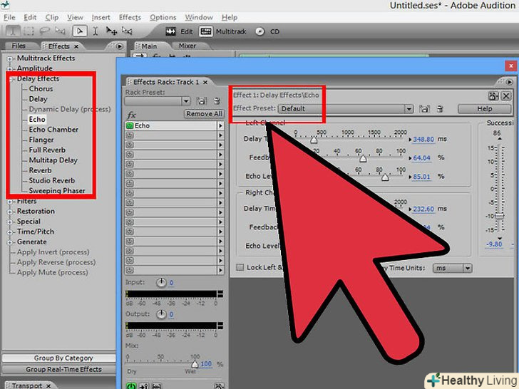 Надайте вашому кліпу ефект відлуння.зайдіть в меню " затримка і відлуння "і виберіть ефект"Відлуння". Можна вибрати різні варіанти Луни і надати кліпу, наприклад, ефект гірського луни. Експериментуйте з налаштуваннями для досягнення кращої якості.
