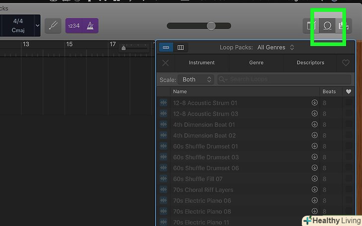 Натисніть на "приховати / показати петлю" в нижньому лівому кутку.це дозволить вам вибрати інструменти та петлі, щоб змішувати, налаштовувати та створювати пісні.