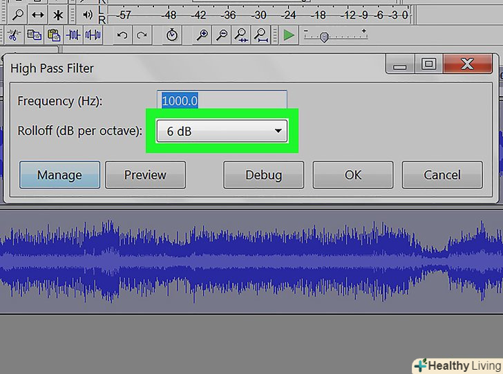Застосуйте фільтри нижніх або верхніх частот.залежно від того, як звучить ваш аудіозапис, може знадобитися використання фільтра нижніх або верхніх частот. Якщо в записі чується перекіс в бік високих частот, застосуйте фільтр нижніх частот. Якщо ж доріжка звучить низько і приглушено, застосуйте фільтр високих частот. Обидва ефекти знаходяться на вкладці "ефекти". У випадаючому меню " Rolloff (dB per octave)» Виберіть, скільки децибел буде зрізатися з однієї октави. Ви можете вибрати від 6 до 48 децибел. Клацніть "прослухати«, і якщо вас влаштовує звучання, натисніть» OK" для застосування ефекту.