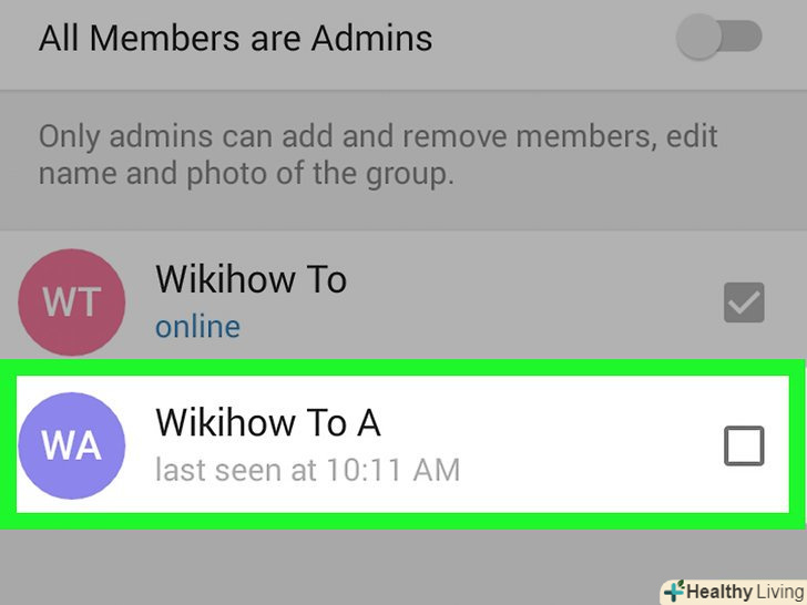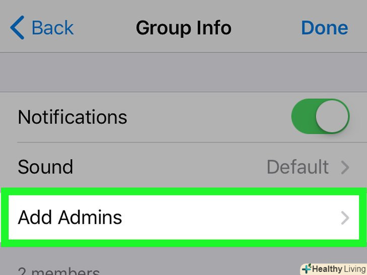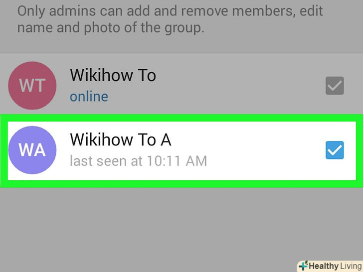 Натисніть на учасника, якого ви хочете зробити адміністратором.- Якщо ви редагуєте супергрупу, то у вас буде можливість встановити спеціальні дозволи для цього адміністратора. Використовуйте перемикачі, щоб включити або відключити потрібні дозволи.[4]