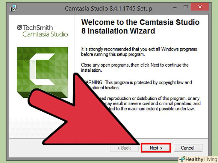 Запустіть програму установки.під час установки вам потрібно буде прочитати і підтвердити Угоди користувача. Вас також попросять ввести ліцензійний ключ або вибрати установку пробної версії Програми. Якщо у вас є ключ, введіть його або скопіюйте у відповідне поле і введіть ваше ім'я.- Якщо ви купуєте Camtasia, ліцензійний ключ буде висланий вам на електронну пошту. Якщо ви не можете знайти цей лист, перевірте в папці Спам.