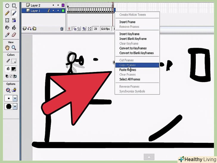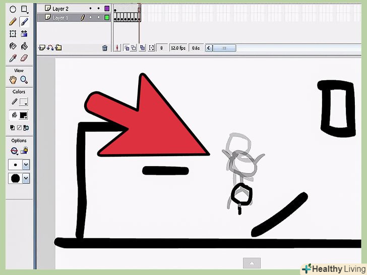 - А також, спробуйте, так званий, FBF (або анімація-фрейм за фреймом), в якому ви малюєте зображення на одному фреймі, а на другому, продовження "руху" першого фрейму. Якщо ви продовжите в такому дусі, ви зможете створити дуже хорошу анімацію (з належним умінням). Однак, цей метод вимагає багато часу, і терпіння.