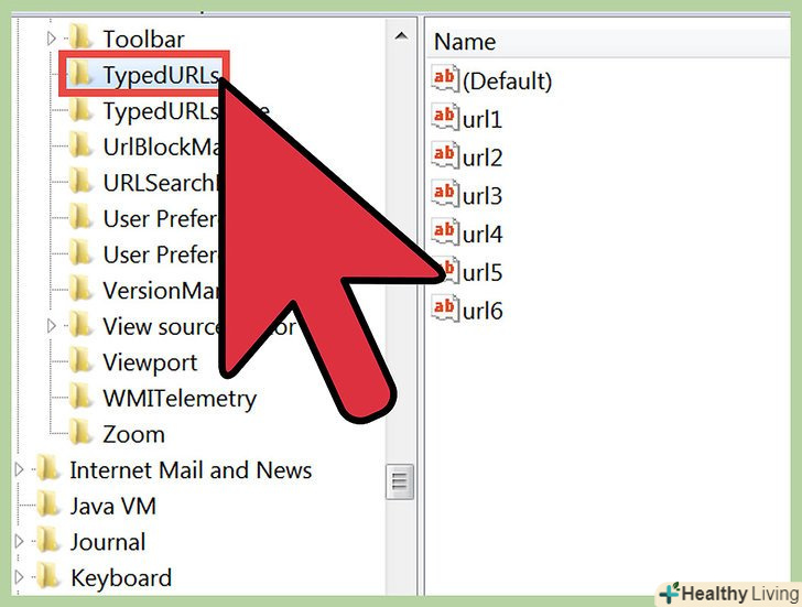 Клацніть по папці "TypedURLs".у папці " Internet Explorer "знаходиться папка"TypedURLs". Клацніть по цій папці, щоб відобразити список адрес відвідуваних сайтів. Ця інформація зберігається в реєстрі для того, щоб виконати автозаповнення адреси при його наборі в адресному рядку Internet Explorer.- Якщо у списку присутні адреси сайтів, які ви ніколи не відвідували, швидше за все, реєстр був змінений шкідливою програмою. Такі програми редагують список сайтів з метою перенаправити вас на сторонні ресурси. Для того щоб отримати додаткову інформацію про захист від шкідливих програм прочитайте цю статтю.