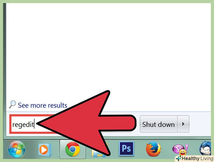 Запустіть редактор реєстру. для цього натисніть клавішу Win, в рядку пошуку введіть regedit і натисніть клавішу ↵ Enter. У вікні із запитом на внесення змін в Налаштування комп'ютера натисніть "Так".