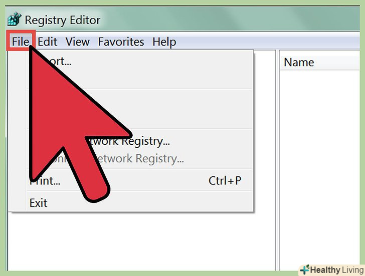 Натисніть "Файл".у вікні редактора реєстру в рядку меню (зверху) натисніть "Файл". Відкриється випадаюче меню.