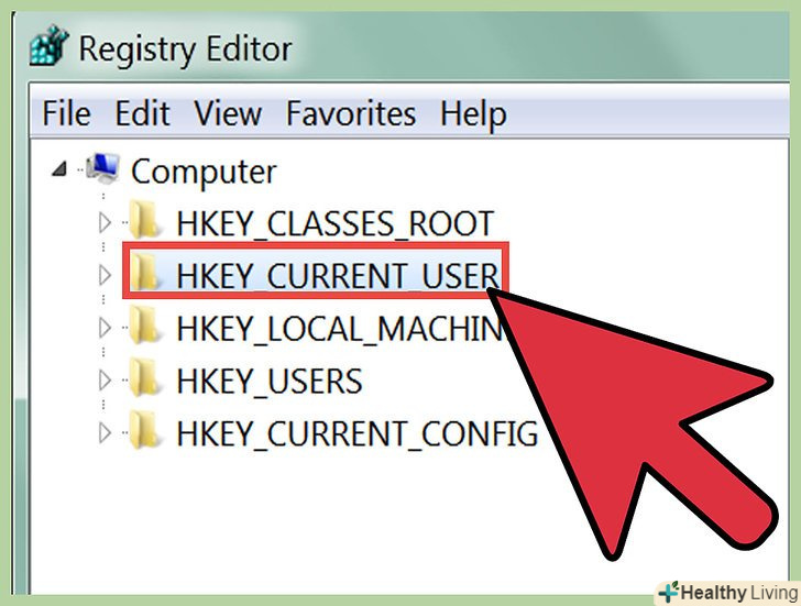 Двічі клацніть по розділу "HKEY_CURRENT_USER".у лівій частині вікна редактора реєстру відображається список розділів, назви яких починаються з "HKEY". Двічі клацніть по розділу "HKEY_CURRENT_USER", щоб розкрити його.