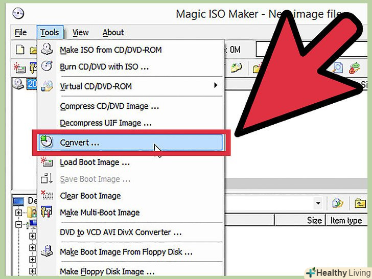 Запустіть конвертер.відкрийте MagicISO і натисніть "Інструменти – - " bin В ISO".