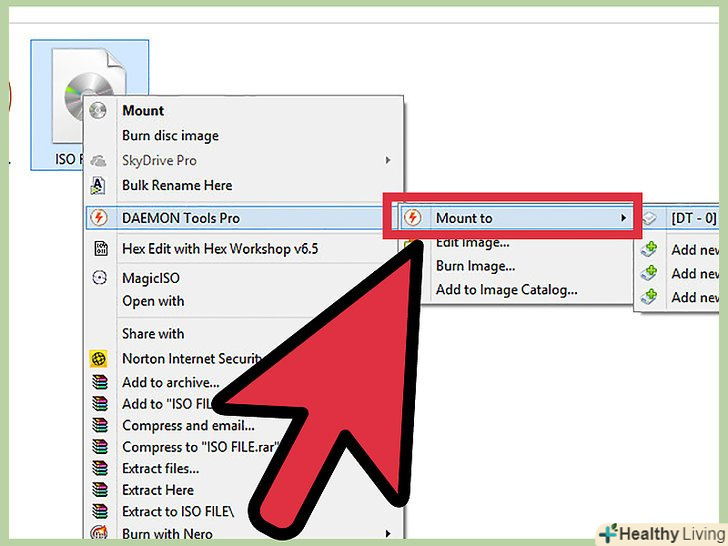Змонтуйте ISO файл у віртуальний привід.у Windows 8 або OS X клацніть правою кнопкою миші на файлі ISO і виберіть "монтувати".