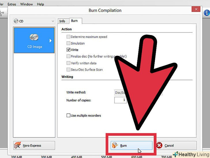 Почніть запис (пропалювання).якщо образ завантажений правильно, вставте чистий диск і почніть пропал. Час, необхідний для запису, залежить від розміру образу, швидкості оптичного приводу і продуктивності вашого комп'ютера.