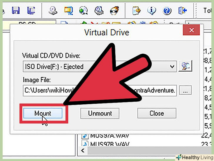 Змонтуйте образ. такі програми, як DaemonTools, відображають значок в системному треї. Клацніть правою кнопкою миші по цьому значку, Наведіть курсор на один з віртуальних приводів, а потім виберіть «Монтувати образ».- Знайдіть файл CUE на жорсткому диску. Пам'ятайте, що bin і CUE файли повинні бути в одній папці. Завантажте файл CUE у віртуальний привід.