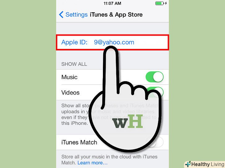 Торкніться Apple ID, який наразі увімкнено на вашому iTunes.- Якщо ваш персональний Apple ID відображається поруч з "Apple ID," тоді ви вже зробили вхід в iTunes.
